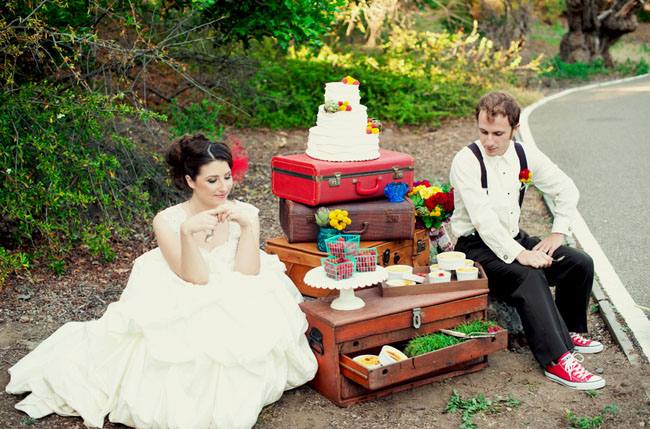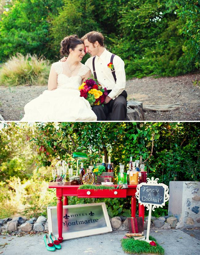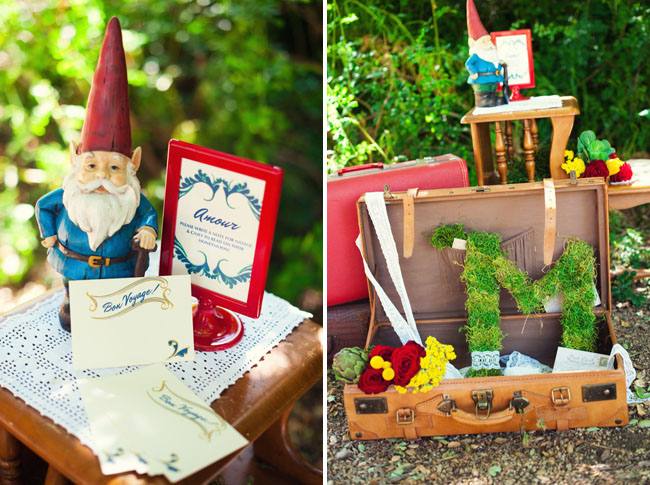 Sem dúvida um dos nossos filmes preferidos é “O Fabuloso Destino de Amelie Poulain”, por isso amamos esse ensaio de casamento inspirado nele. O Gnomo, personagem viajante do filme, fica na “mesa da lua-de-mel”, onde os convidados podem escrever mensagens para os noivos lerem durante a viagem. Os detalhes fofos são muitos, o buquet, por exemplo, tem elementos do mercado de rua do filme. Os pequenos prazeres que Amelie gostava também estão presentes, as framboesas, para serem comidas nos dedos, e o creme brulee, para ser quebrado com uma colher, estão presentes.
