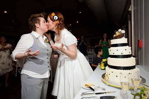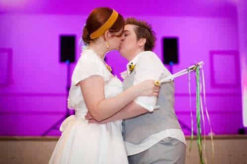 “Nosso casamento foi o resultado incrivelmente maravilhoso de muito trabalho, assim como é nosso relacionamento. Nós duas tivemos que superar um monte de medos sobre nós mesmas e o mundo, a fim de estar onde estamos hoje, e eu acho que mostramos o nosso esforço e determinação . Nenhuma de nós tem muito o que falar sobre nossas “famílias de sangue”, então a ideia de família escolhida é muito importante. Como dissemos em nossa cerimônia, todas as pessoas lá, independentemente do status de sangue, estava lá porque nós os escolhemos como nossa família e queríamos que eles estivessem lá.”