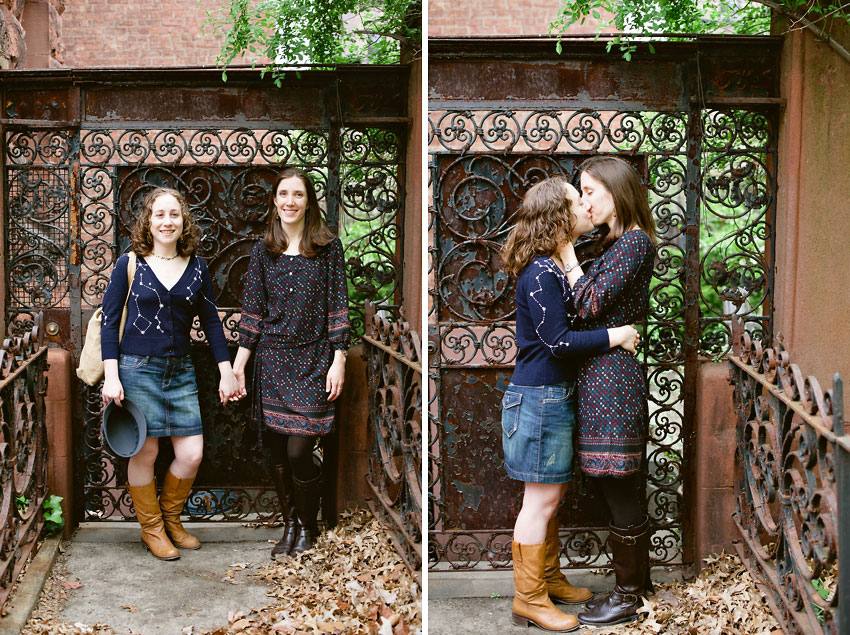 Clara e Sarah andam pelo bairro na direção da Biblioteca Pública do Brooklyn para fazer suas fotos na frente de um prédio com algumas coisas que você provavelmente nunca irá ver em outra sessão de fotos de Kelly Prizel. A menos que ela consiga alguns clientes da NASA ou outros cientistas impressionantes. Isso é realmete um foguete de pelúcia . Clara está de fato usando um suéter com constelações . Tudo isto foi incluído na sessão de fotos deste noivado por que Clara é repórter cientifica. A biblioteca foi o local escolhido para as fotos porque Sarah lê como uma maluca. A sessão de fotos representa um pouco de cada noiva ^_^