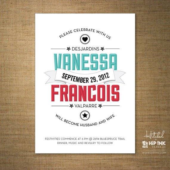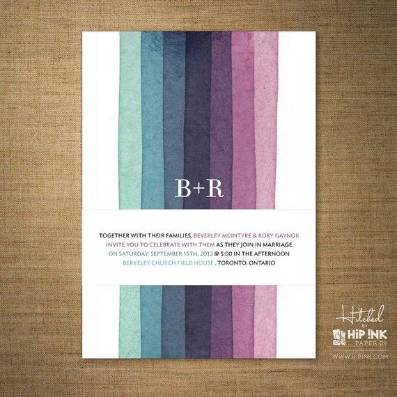 Encontrei a alguns dias este convite listrado (acima) no Pinterest e cliquei para descobrir de onde vinham os originais. Me apaixonei completamente pelo trabalho da Hip Ink. Hitched,é uma coleção de elegantes, fofos e modernos convites de casamento. A coleção apresenta uma incrível variedade de projetos que encantam as noivas de imediato. Entre os projetos disponíveis você vai encontrar borrões, desenhos geométricos, tinta salpicada, uma arte minimalista e retro. Estes são alguns dos meus favoritos: