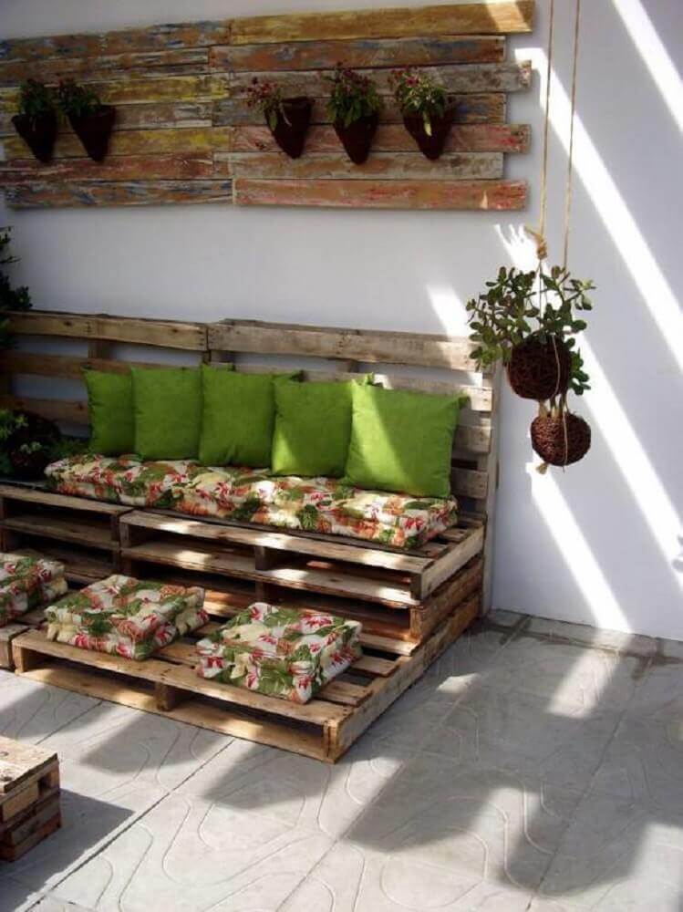 Já faz algum tempo que eu li a respeito a ideia nem é tão original assim, mas usar palets e caixotes na decoração é tão casa de campo. Acho fofo enfim e econômico. Para fazer um sofá de palets , usando 3 ou 4 e mandando fazer almofadões de espuma forrados como acento você vai gastar cerca de 450 reais ( usando artigos “dos bons”) sendo que um sofá de 3 lugares hoje em dia você vai gastar cerca 900 se for um bem fuleirinho. Sem contar na infinidade de outros usos para palets e caixotes. Confesso ter um desejo na estante de pratos ^_^
