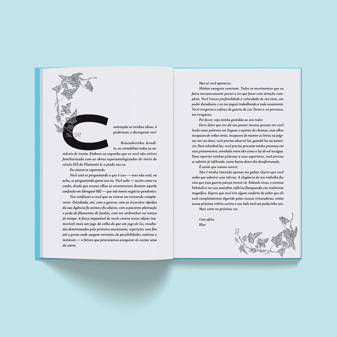 Nesse sentido, interessante saber também que cada um dos dois autores escreveu como uma personagem, numa verdadeira troca de cartas. E, para mim, mais interessante ainda foi notar que o trabalho de tradução de Natalia Borges Polesso (nome conhecido na literatura nacional) adaptou todos os termos que estariam neutros em inglês (como profissões – soldiers, guardians) para suas versões femininas no nosso português. Essa escolha de tradução, apesar de retirar a neutralidade das figuras, por outro lado exalta a representatividade de ter um romance entre duas mulheres tão à frente da obra.