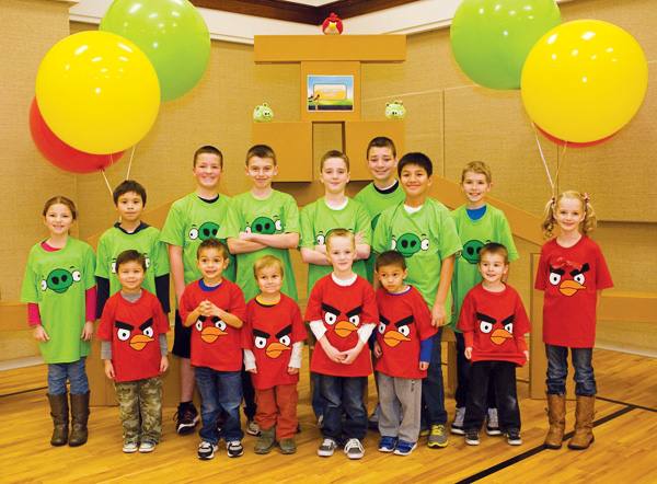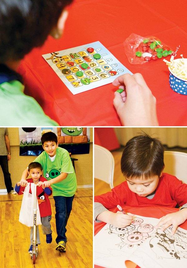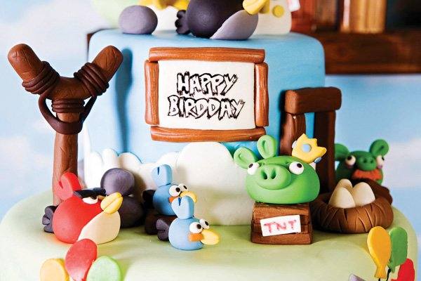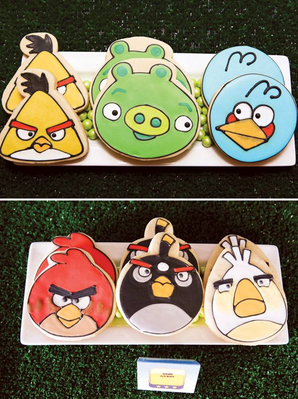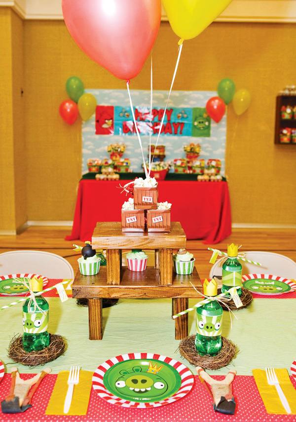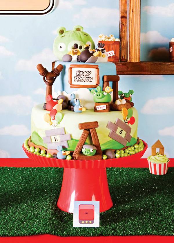 Uma festa toda customizada com os elementos do viciante games Angry Birds, com direito a estilingue gigante, boliche e uma gincana com dois times: pássaros e porcos. Grande parte do atrativo da festa veio do cenário montado com bexigas, caixas e outros elementos que foram impressos em papel especial e incorporados a decoração. No minimo perfeito.