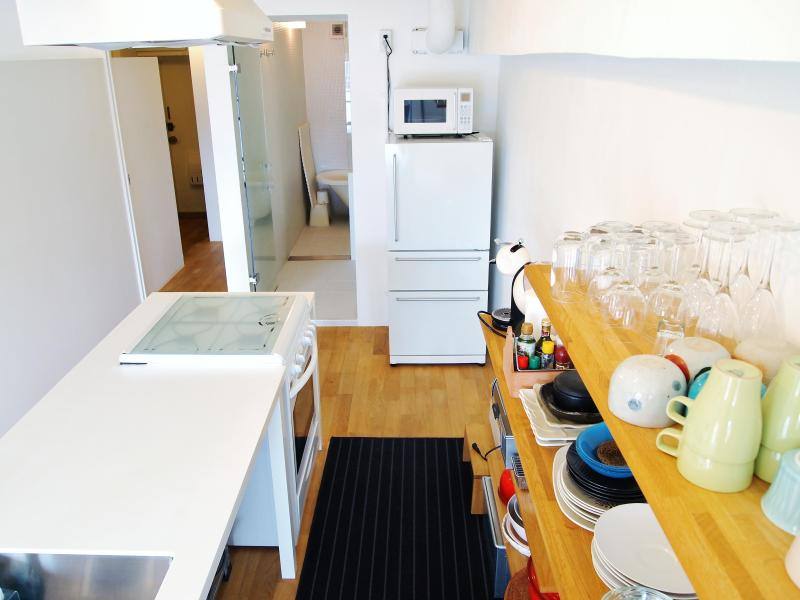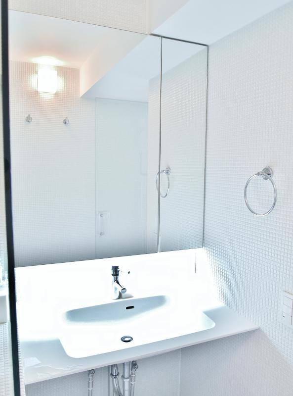 Mais soluções para pequenos espaços. Muito branco e linhas retas neste apartamento em Osaka. Adaptável para os novos pequenos espaços daqui 🙂