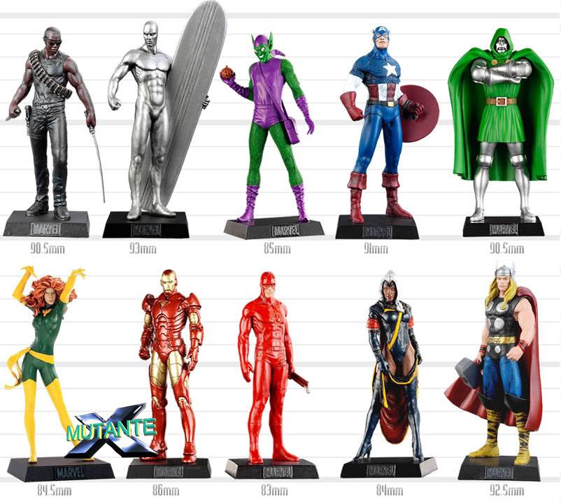 Cada fascículo tem 20 páginas e contém um resumo detalhado da história do personagem: da origem secreta e das batalhas épicas até aos triunfos e às tragédias. O tamanho de cada figura varia de 80mm a 95mm, de acordo com o personagem. A coleção está prevista para ter 60 edições lançadas quinzenalmente. Publicada na Inglaterra pela editora Eaglemoss, com o nome de The Classic Marvel Figurine Collection, a coleção já conta com mais de 150 personagens.