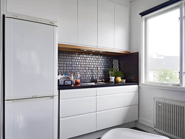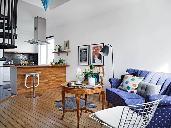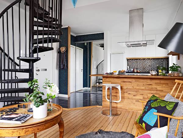 Localizado em um charmoso prédio de apartamentos em Gothenburg , este apartamento de 51 m² se espalha ao longo de dois níveis. O piso de madeira se destaca pela luz natural saltando pelas paredes brancas. Duas janelas de frente para direções diferentes garantem uma atmosfera alegre em dias ensolarados. O nível inferior é reservado para espaços sociais, como a sala de estar aberta que integra a cozinha. Um elegante corredor azul escuro acomoda a escada escultural que leva ao quarto cheio de luz e com um espaço funcional para um home office.