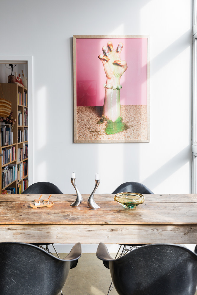 Rapaz, foi uma jornada quando nos mudamos para morar juntas. Quando se trata de arte, nós duas gostamos de abstração. As peças de arte mais adoradas que possuímos são cestas tradicionais feitas à mão pelas mulheres indígenas australianas com quem a mãe de Siri trabalha, várias estátuas Art Déco, grandes trabalhos fotográficos de Casey e várias peças originais do coletivo King Pins na Austrália.