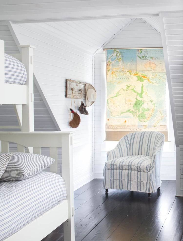 Uma casa de campo na cidade, nada mal. Reparem na cortina Mapa Mundi do quarto de uma das crianças, adoramos a ideia.