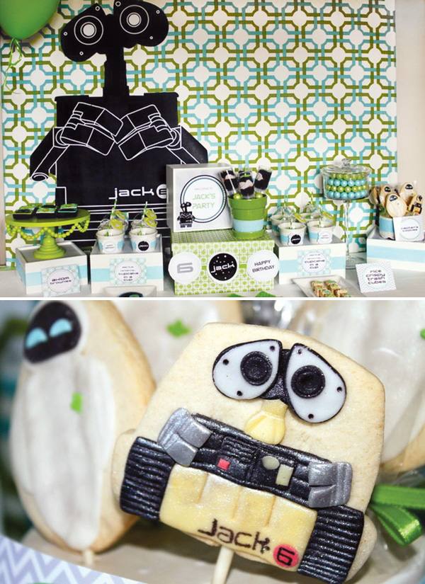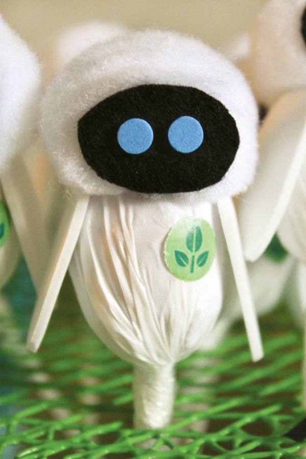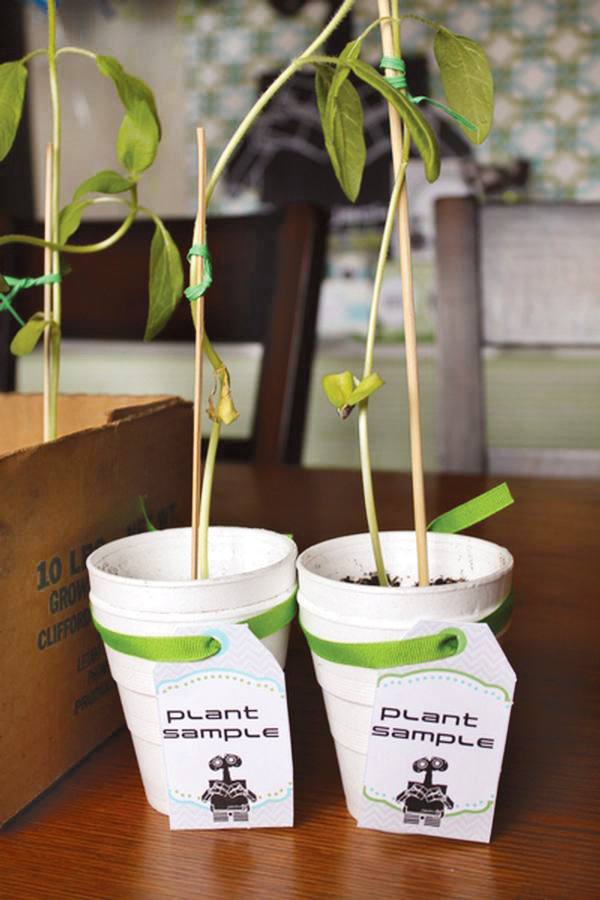 Uma festinha toda feita a mão, inspirada no sucesso da Disney Pixar Wall-e. O que me encantou mais foi a lembrancinha, que é uma mudinha de planta, igual a que foi usada no retorno dos humanos na terra. Adorei!